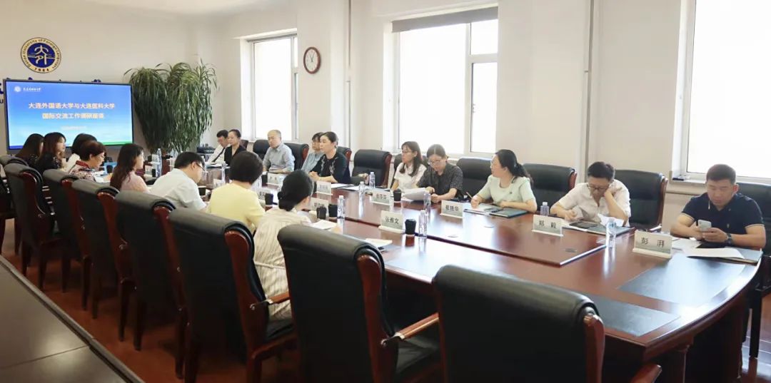院长卢苇带队,副院长郭艳秋及学院相关科室负责人同行。大连外国语大学国际交流与合作处处长李凡、汉学院院长陈子骄、国际交流与合作处副处长姜滨滨及相关部门代表在承志楼526会议室亲切接见卢苇院长一行并进行了深入交流。