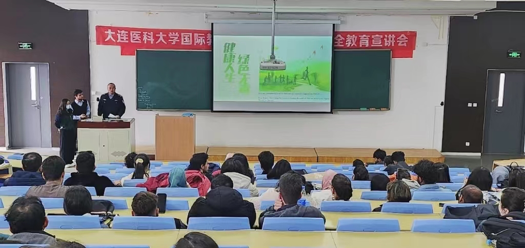 宣讲会上,旅顺口分局警官通过展示毒品仿真模型、剖析毒品危害的真实案例,生动地向留学生们阐述了毒品的种类、特征及其对个人和社会的严重危害。警官还传授了识别和防范毒品诱惑的方法和技巧,使留学生们深刻认识到远离毒品的重要性。最后,警官再次强调所有留学生必须严格遵守中国的法律法规,坚决远离毒品。