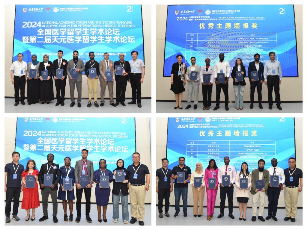 5月25日,2024全国医学留学生学术论坛在南京医科大学举行,本次论坛以“发展卫生健康新质生产力视域下的医疗健康服务与研究”为主题,面向全国高校医学专业在读博士和二、三年级硕士留学生,展示成果涵盖临床医学、公共卫生、卫生事业管理、 医疗健康服务、健康中国与卫生健康新质生产力研究等各个领域,旨在激发来华医学留学生学术热情,充分展示近年来留学生学术研究成果。