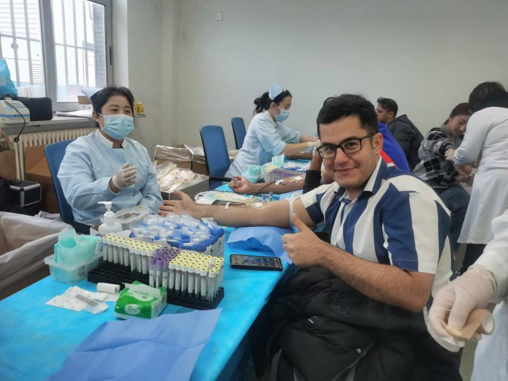 11月5-6日,我校50余名留学生在学校首次参与了大连市血液中心组织的无偿献血活动,以实际行动展现了对人类命运共同体理念的深刻理解和积极实践,展现了他们的国际主义精神和对社会责任的担当。