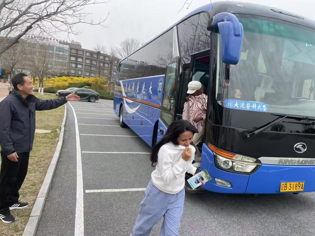 随后,演练正式进入实操阶段,大巴车被模拟为突发紧急情况的车辆,车后端着火,留学生们在老师的引导下迅速行动起来,按照之前讲解的步骤,解开安全带,用衣物捂住口鼻,低姿有序从车门逃生。整个过程中,老师们在车外密切关注留学生的逃生动作,及时纠正,最终所有留学生都在规定时间内成功逃生。