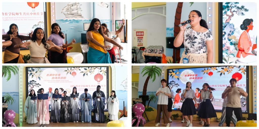 节目表演结束后,活动进入温馨的茶话会环节。现场摆放了各色月饼、新鲜水果等节令食品,师生围坐在一起,一边品尝美食,一边畅谈生活与学习中的趣事。大家用中文、英文以及各自的母语交流着对中秋的感受,分享着家乡的节日习俗,在轻松愉快的氛围中,进一步拉近了彼此的距离。活动最后,全体师生共同拍摄“中秋全家福”,镜头定格下一张张灿烂的笑脸,也记录下这场跨越国界的团圆时刻,为此次中秋活动留下了珍贵的回忆。