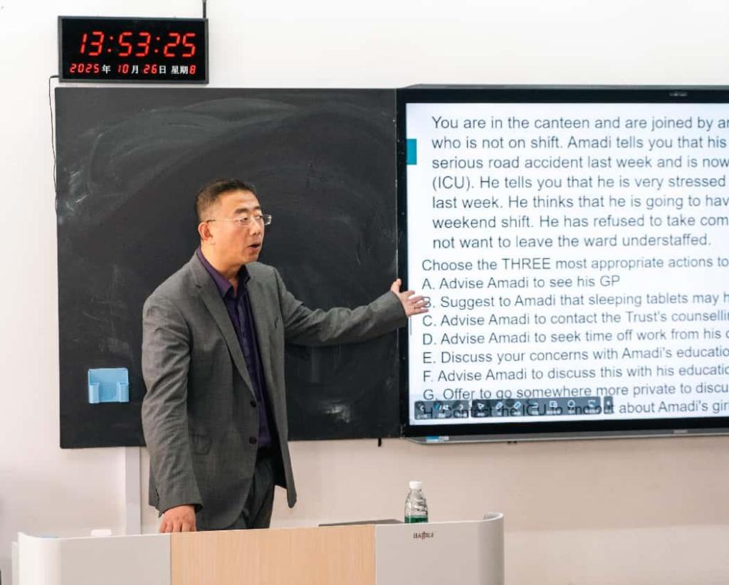 伊朗本科生艾拉赫兴奋地说:“讲座清晰地比较了USMLE和PLAB两类考试在结构、评分标准以及内容、推理和临床技能评估方式上的区别。整体内容既激励人心,又开阔视野,非常感谢学校组织这样一场讲座。”
