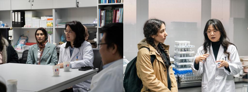 随后,社会实践团走进中国医学科学院肿瘤医院。流行病学研究室主任赵方辉教授对师生们的到来表示热烈欢迎,并详细介绍了科室的发展历程、研究方向及团队构成,重点展示了在宫颈癌、食管癌等肿瘤防治方面取得的成果。留学生们围绕“宫颈癌筛查基层推广模式”踊跃提问,现场交流气氛热烈。座谈会结束后,留学生们实地参观了实验室与展区。实验室内,基因检测设备、肿瘤样本库等功能设施一一呈现,展现了中国在肿瘤基础研究方面的雄厚实力,使留学生们直观感受到中国肿瘤防控事业的跨越式发展。此外,留学生们还参观了北京协和医学院校园内的历史建筑,进一步加深了对中国医学教育及公共卫生体系的了解。