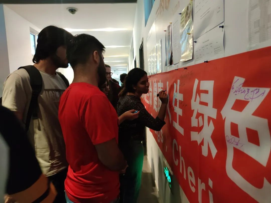 活动中,学院以宣传展板的形式向留学生详细介绍了毒品的类别及危害,提高留学生对毒品的防范意识。同时,学院组织留学生在印有远离毒品 珍爱生命 健康人生 绿色无毒的条幅上进行签名活动。留学生踊跃地签上了自己的名字并留写了对于平安及健康的美好祝愿。