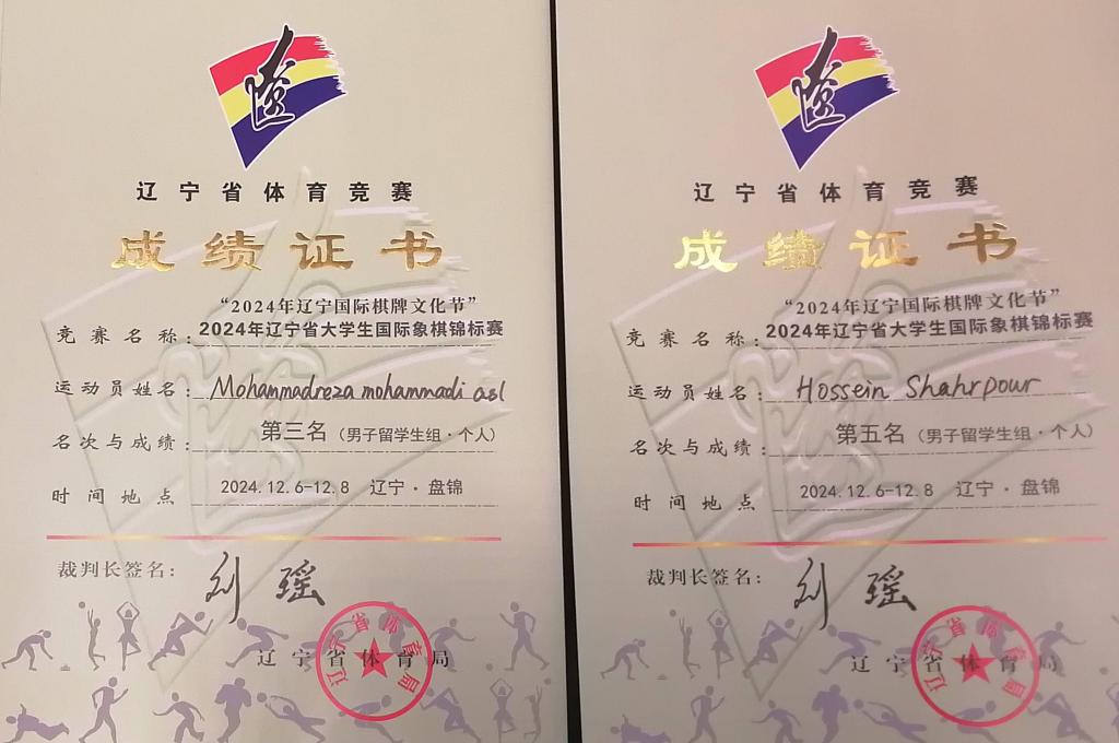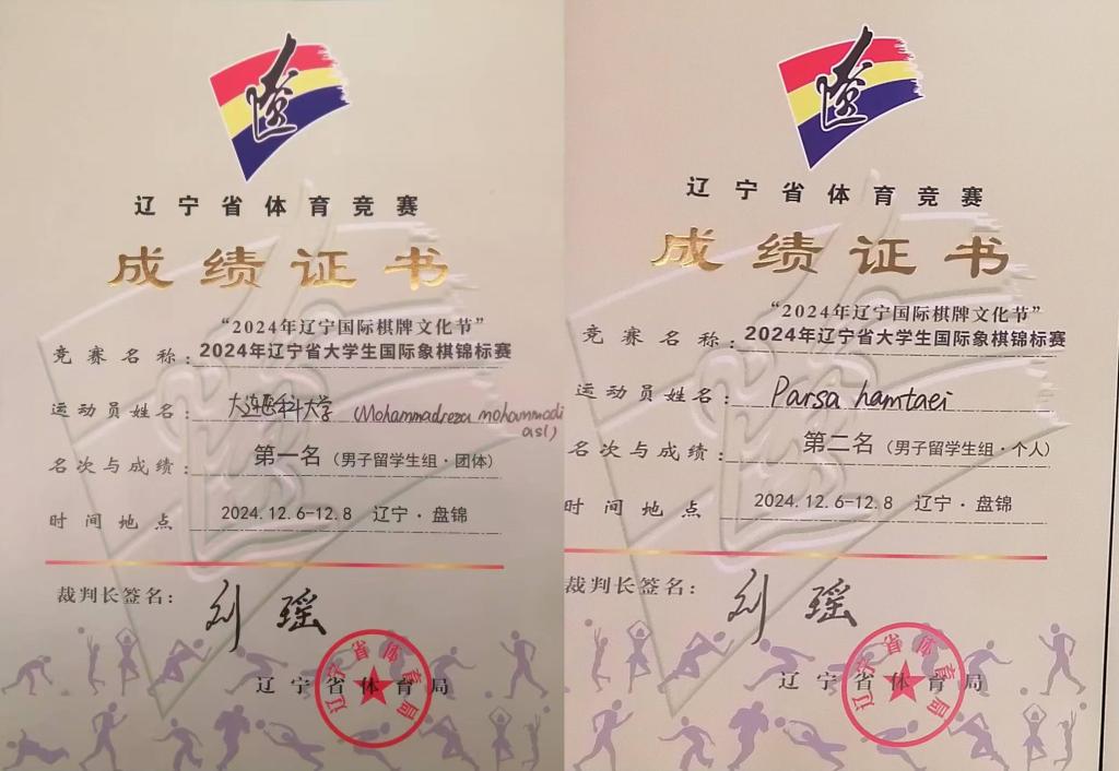2024年12月8日,由辽宁省体育局主办的辽宁省大学生国际象棋锦标赛在盘锦市圆满落幕。本次比赛吸引了来自辽宁省内多所高校的中外大学生棋手参与,我校4名留学生首次与3名本科生组队,代表学校参赛,获得总团体第一名、留学生组第一名、男子留学生组个人第二、三、五名的好成绩。