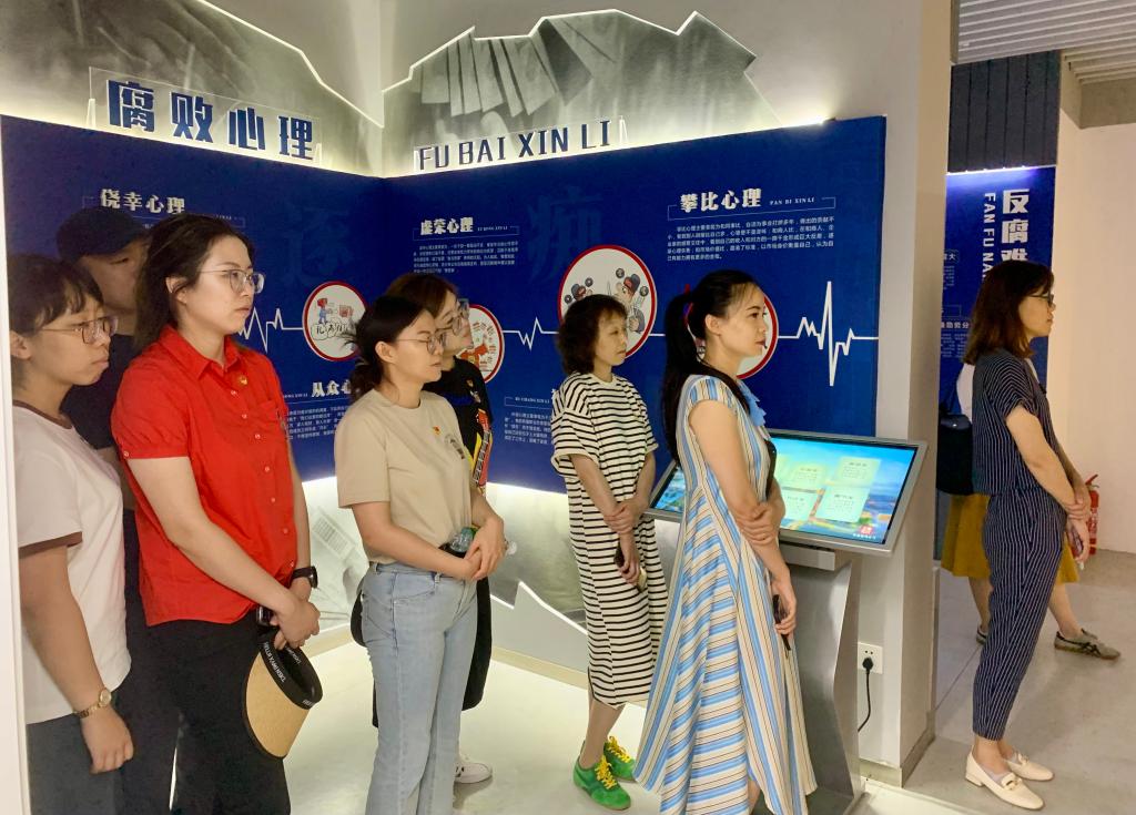 在“恰少年·风华正茂”展厅,党员教师们通过3D裸眼交互、全息幻影成像、滑轨触控显示、沙画等新型模式,沉浸式体验了“孝”“贤”“礼”“志”“清”等中华优秀传统美德和家国情怀,深刻领悟了“系好人生第一扣”、“迈好理想第一步”、“上好廉政第一课”的意义。